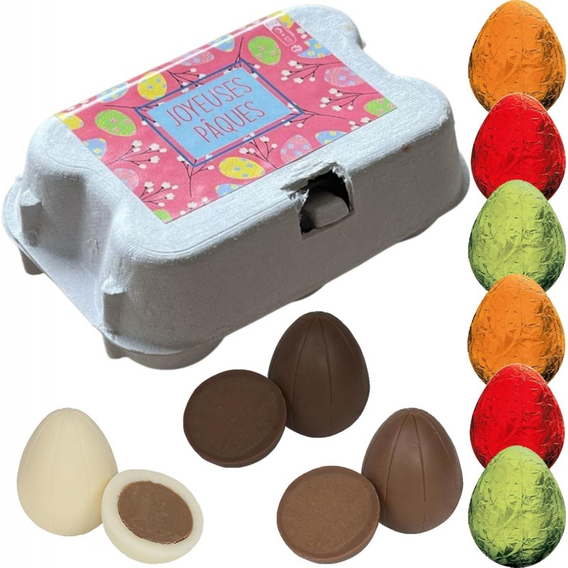 Mini boite d'oeufs remplis de 6 oeufs fourrés praliné (3 parfums)
