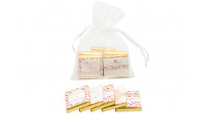 Le sachet organza est rempli de 5 chocolats personnalisés "Liberty". Le cadeau aux invités idéal qui ressemble à quelque chose de connu mais O surprise, c’est bien meilleur que des dragées impersonnelles ! A l’intérieur retrouvez de délicieux petits chocolats à l’effigie des mariés ou du baptisé, ou encore du nouveau-né ; La classe !